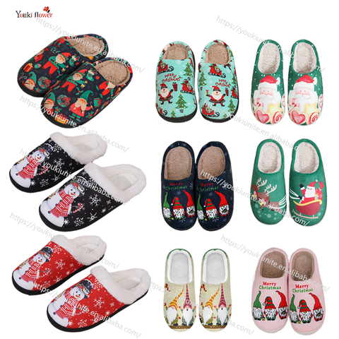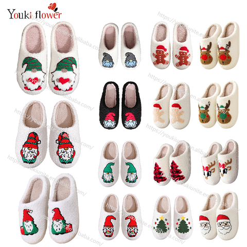 Chaussons d'hiver en coton pelucheux Cartoon Elf Deer Santa Christmas Tree Snowflakes Gingerbread Snowman Christmas pantoufles for Women Men