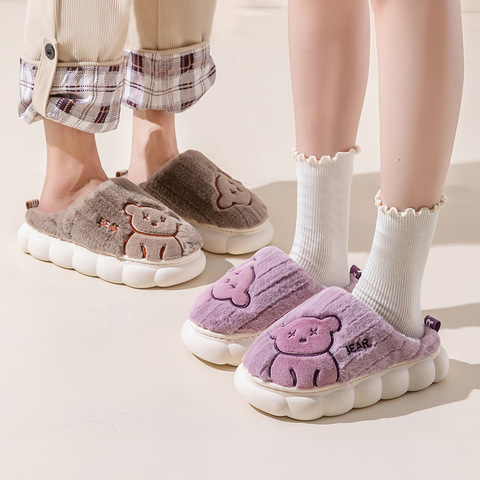 Pantoufles en coton à usage domestique hiver dessin animé ours et lapin animal chaud pantoufles en peluche pour hommes et femmes