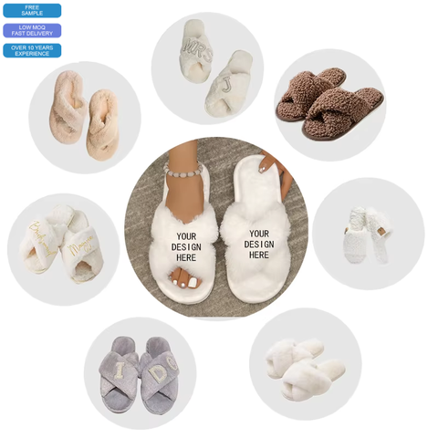 Custom Fluffy Fuzzy Bridesmaid Bride's slippers for Bridal Party Bachelor Party