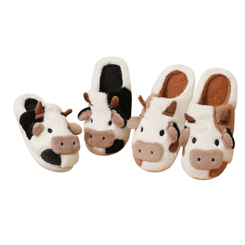 Automne hiver intérieur en peluche pour pantoufles anti-dérapant vache impression Design avec bout ouvert PVC doublure TPR semelle extérieure pour hommes et femmes