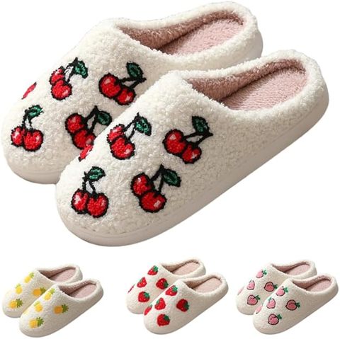 Hiver Maison Fruit Ananas Avocat Pêche Pastèque Raisin Cerise Champignon Fraise Coton Fruit pantoufles pour Femmes